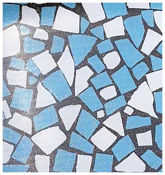 Dan ga je de steentjes met houtlijm in de vorm plakken, soms moet je wat kleinere stukjes knippen met een nijptang of als je een tang voor mozaïek hebt is dat nog wat beter.